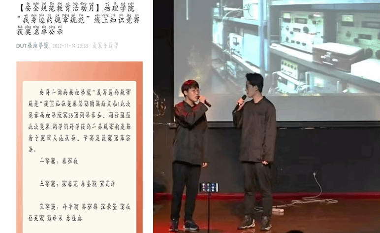 学院组织了为期一周的“我身边的规章规范”线上知识竞赛活动,共55名本科生参加,评出一等奖1名,二等奖3名,三等奖6名。通过此次竞赛活动,同学们对学校规章制度有了深刻认识,进一步增强明善恶、辨是非能力。学院举办“王大珩”先生的亲切安全叮嘱特别活动,为同学们生动讲解了实验室安全和寝室生活安全问题,进一步强化了学生的安全意识。