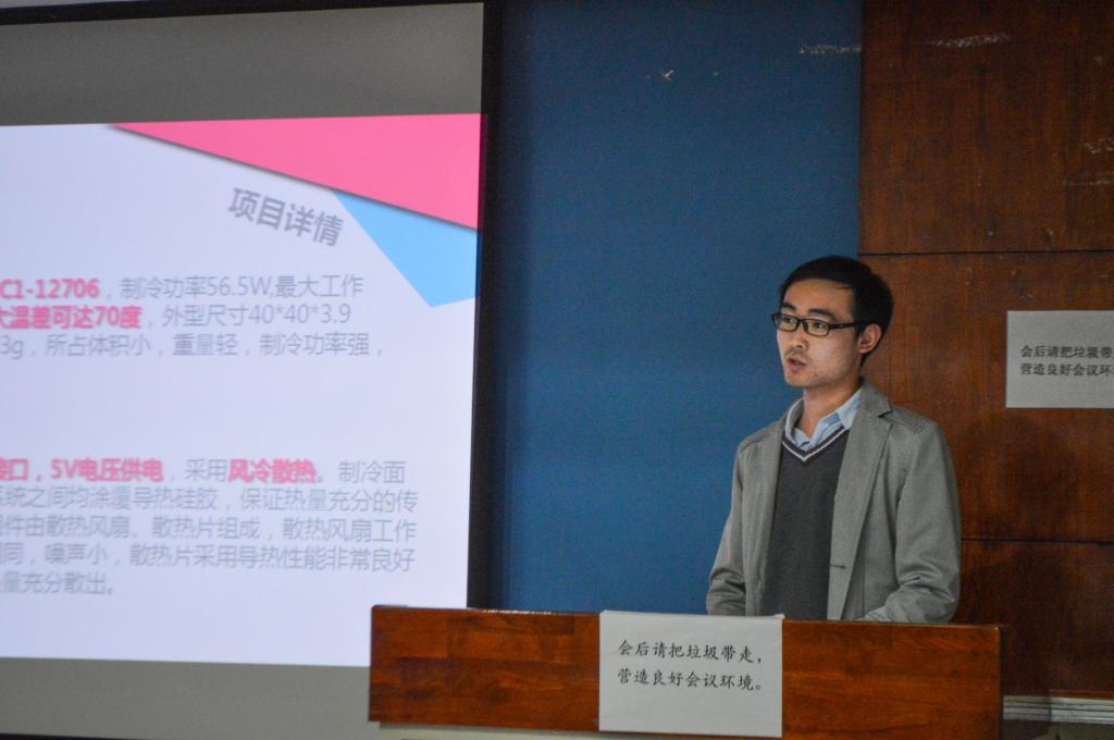 参加决赛的每支队伍分别选出一人对成果的研制历程,基本原理,创新思想和进行研究的意义等方面进行详细全面的阐述。新颖的想法,大量的工作,反复的实验让评委老师看到了参赛队伍的不懈努力。评委老师则从作品的实际功用,普适性,造价成本,应用前景,创新应用以及PPT展示等方面进行客观而细致的点评,并提出十分宝贵的指导意见,指出作品值得改进的地方和以后的进展方向。评委老师的认可与批评是参赛队伍重要的财富,与赛选手均表示获益匪浅。