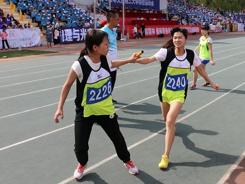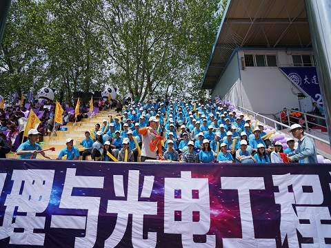 观众台上的同学们给经过的运动员擂鼓助威呐喊加油,终点等候的同学们及时的搀扶起疲累的运动员,贴心的工作人员送去解渴的矿泉水,学院里众多老师也热情参与教工比赛并且加入到协助同学的队伍中。今天物理与光电工程学院不同的年级,不同的身份,不同的职业,齐心协力一起努力,因为他们有一个共同的名字,一个共同的追求,一个共同的信念:“传奇物理,光电寰宇”。