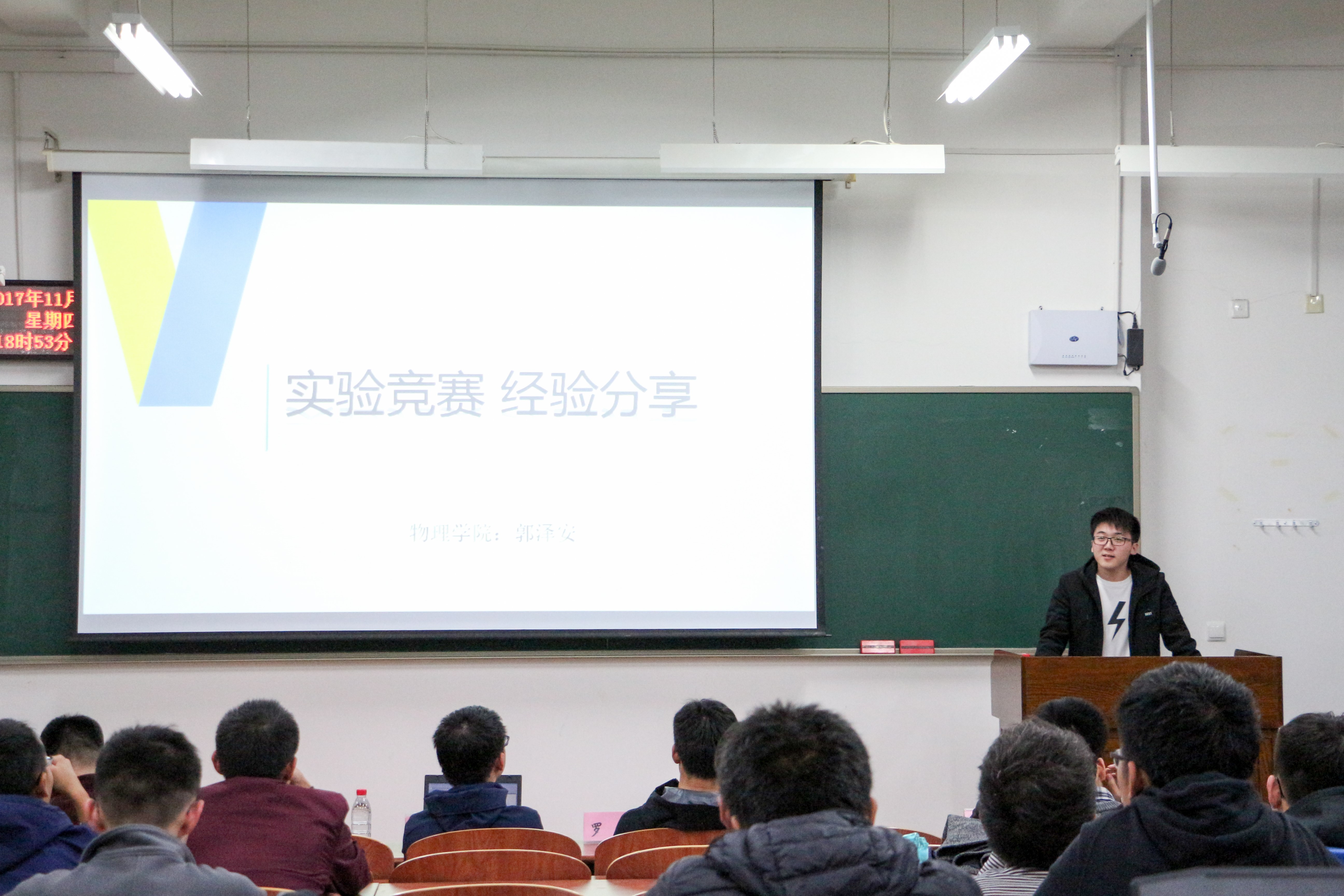 11月16日晚上6点半,由3308维多利亚线路检测中心科技实践部与学习部联合举办的经验分享会暨攀登杯院赛宣讲会于西综B506顺利举办。本次分享会邀请到王上一、郭泽安、谈阳阳、罗涛、周滔等多位科创人才,吸引大批学生前往。