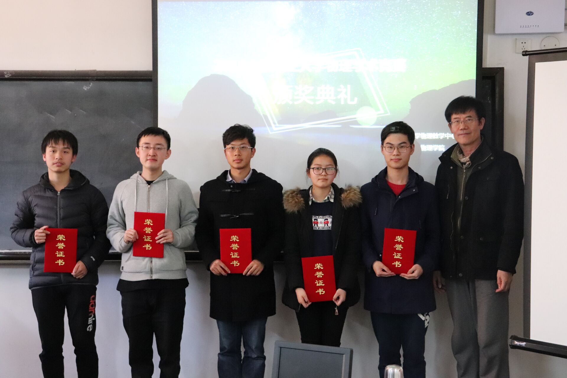 三轮比试过后,本次学术竞赛的颁奖典礼隆重举行,北冰洋队、苏武凯旋队和青铜小队获得一等奖,mebius队和微笑面队获得二等奖,姜东光老师上台给获奖的队伍颁奖。最后,姜东光老师鼓励同学们多参加物理学术竞赛,学着像物理学家一样思考问题,特别指出学习物理、钻研物理对于锻炼思维以及将来工作做事有着巨大的作用,勉励同学们好好学习物理,为将来的人生之路夯实基础。